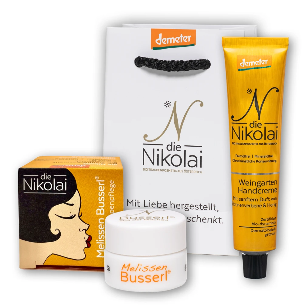 這套禮物組合中,含有我們的香蜂草潤唇膏和帶有淡淡香味的檸檬馬鞭草護手霜。您所愛的人一定會對這份禮物感到高興。 我們的香蜂草之吻是100%有機唇部護理產品,完全不含防腐劑和乳化劑。 檸檬馬鞭草護手霜散發出淡淡的檸檬馬鞭草香氣,為您的肌膚留下絲般柔滑的觸感。 有機Demeter認證,手工製作且具永續性。